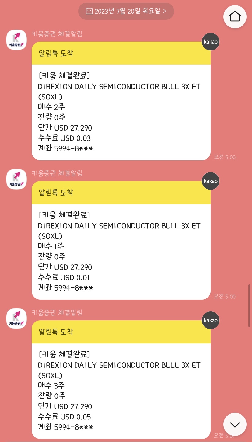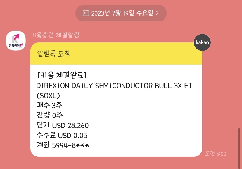 7월 18일의 종가는 28.26달러로 밍끄끄의 평단가보다 높게 마감했기 때문에 절반치인 3주만 매수되었습니다.