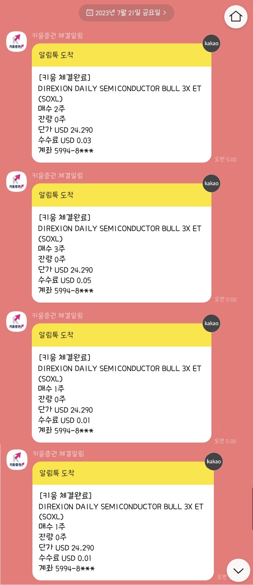이런 방식으로 계속 나누어 매수와 매도를 진행합니다.